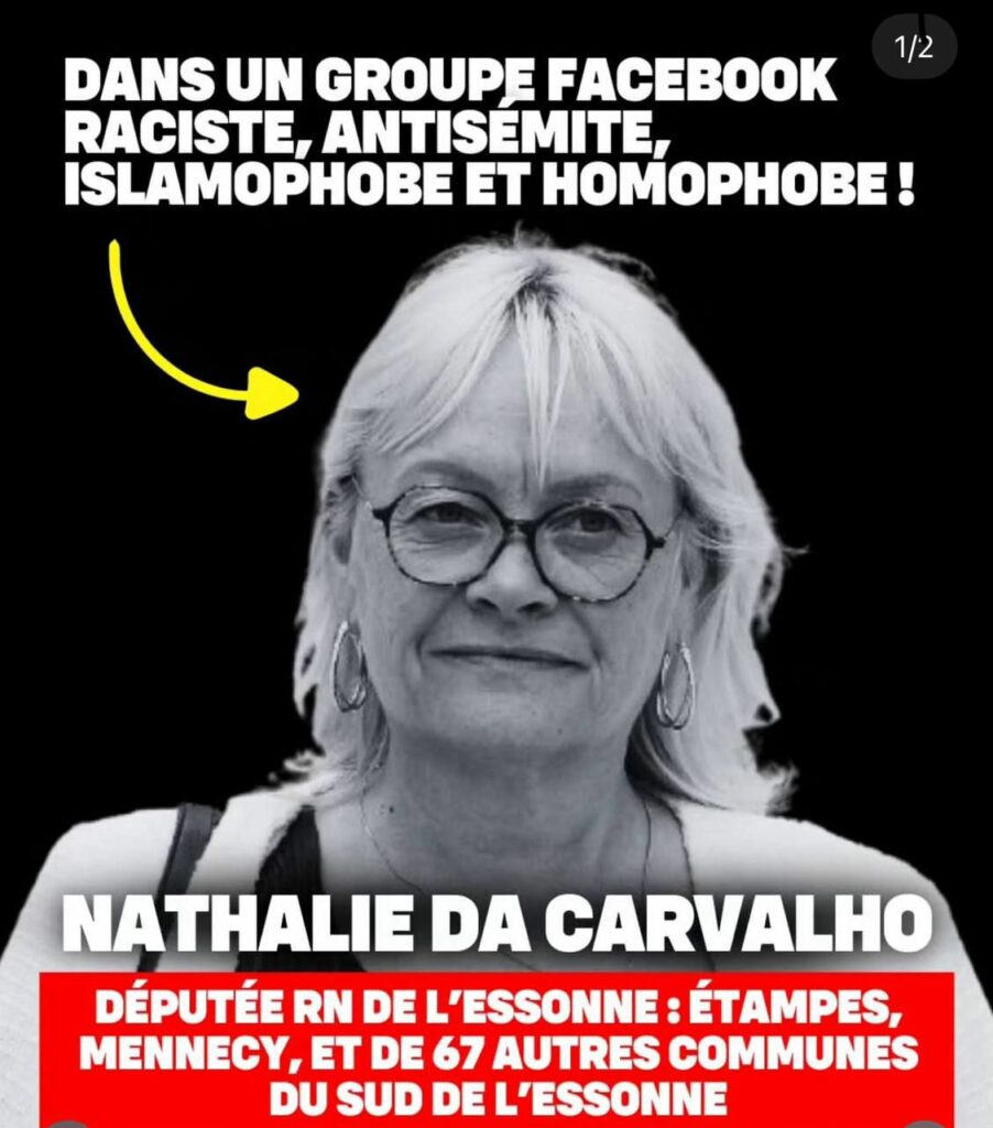 Voilà le niveau de racisme, d’antisémitisme, d’homophobie que notre députée RN cautionne et défend. Ces propos ont été tenus de manière répétée sur un groupe Facebook, administré par des cadres du RN et dont la députée de la 2ème circonscription de l’Essonne est membre.