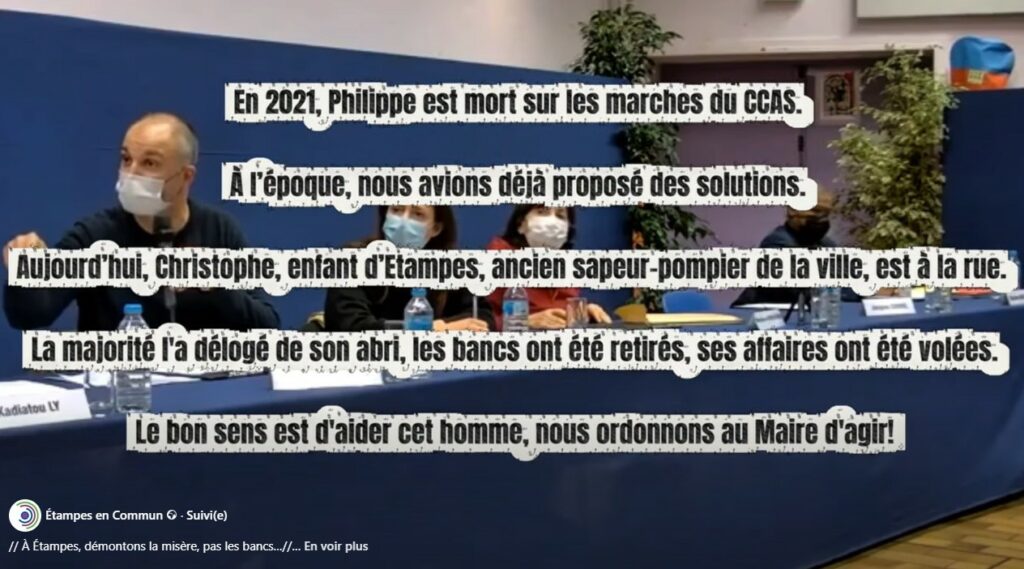 En 2021 déjà, Étampes avait été endeuillée par la mort de Philippe, mort de froid sur les marches du CCAS.
